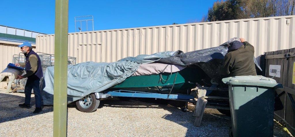 At the Wednesday, 20 August Morning Tea, John Herd unveiled his wonderful home-built boat. Enjoy a few photos taken at the event, or for a video of his actual presentation, click here.